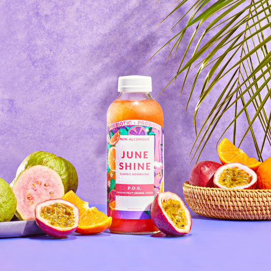 JuneShine Kombucha is a delicious, refreshing, traditional kombucha—a non-alcoholic, functional, fermented beverage designed to help you Live Brighter.